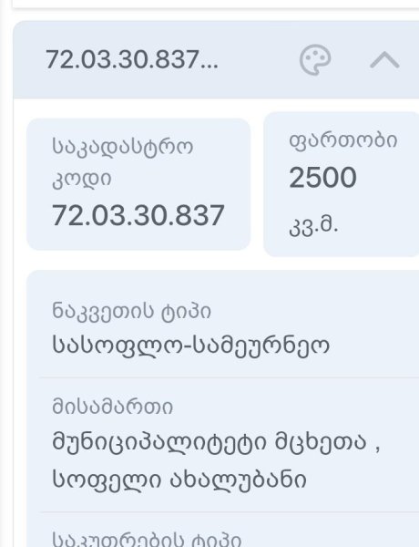 იყიდება სასოფლო სამეურნეო მიწის ნაკვეთი.ნატახტრიდან წილკნისკენ მიმავალ გზასთან.ნატახტრის აეროდრომთან ახლოს